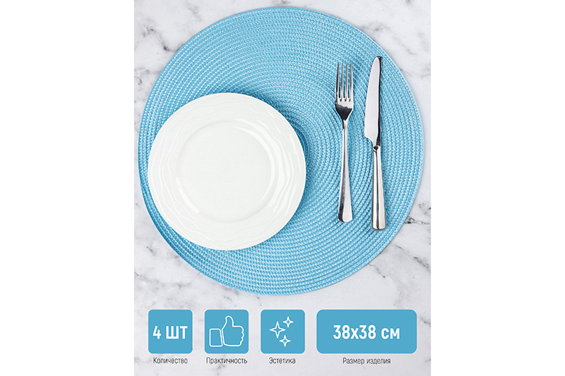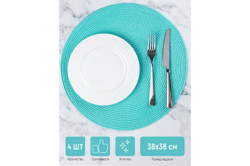 Набор 4-х круг салфеток 38*38 см "Магическая бирюза" PVC