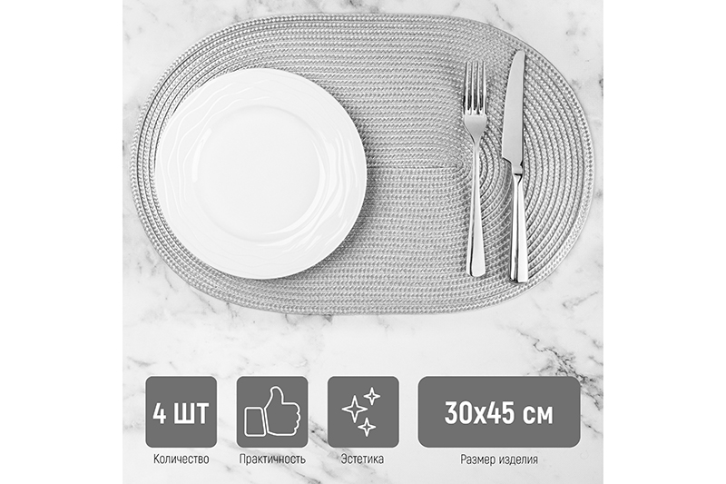 Набор 4-х салфеток 45*30 см "Серая платина" PVC, овал