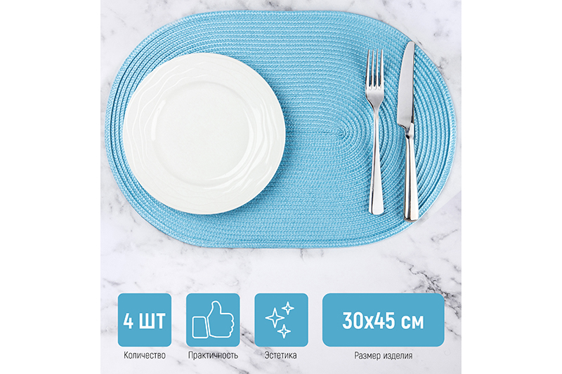 Набор 4-х салфеток 45*30 см "Магическая бирюза" PVC, овал