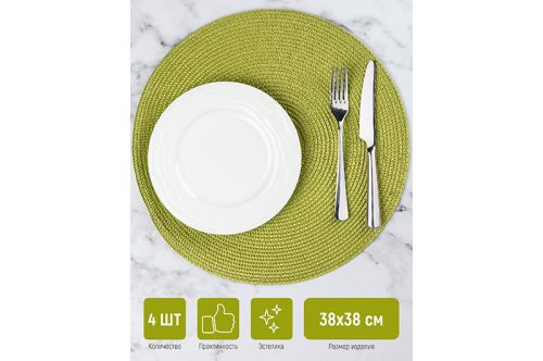 Набор 4-х круг салфеток 38*38 см "Оливковый Крайола" PVC