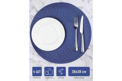Набор 4-х круг салфеток 38*38 см "Полуночный синий" PVC