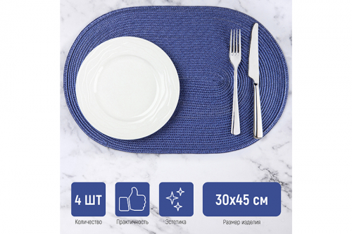 Набор 4-х салфеток 45*30 см "Полуночный синий" PVC, овал