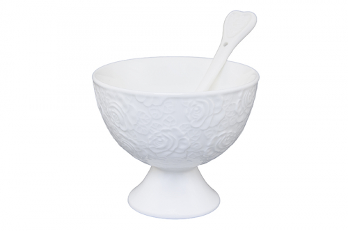 Креманка 260 мл 10,5*10,5*8,5 см "Белые розы" + ложка