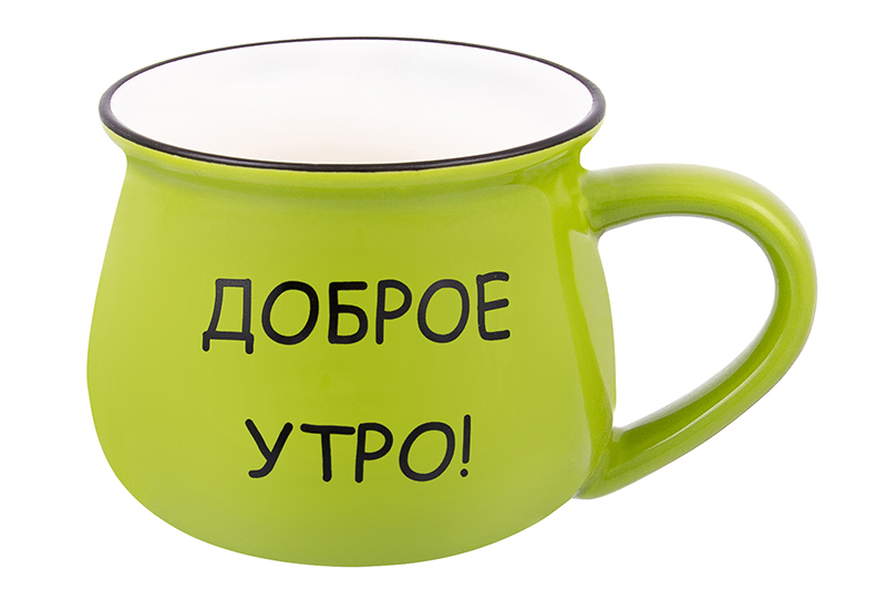Кружка 400 мл 13*9,5*8 см "Доброе утро!" ярко - салатовая, бочонок, NEW BONE CHINA
