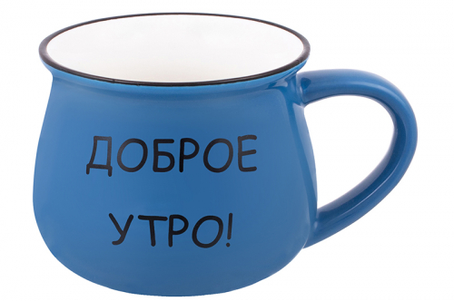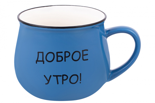 Кружка 400 мл 13*9,5*8 см "Доброе утро!" индиго, бочонок, NEW BONE CHINA