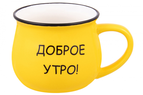 Кружка 400 мл 13*9,5*8 см "Доброе утро!" ярко - желтая, бочонок, NEW BONE CHINA