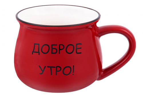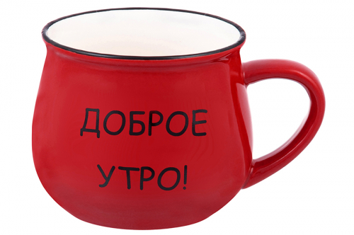 Кружка 400 мл 13*9,5*8 см "Доброе утро!" красная, бочонок, NEW BONE CHINA