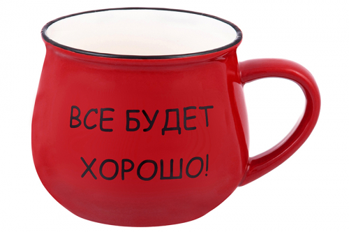 Кружка 400 мл 13*9,5*8 см "Все будет хорошо!" красная, бочонок, NEW BONE CHINA