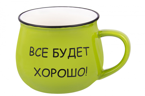 Кружка 250 мл 11*8*7 см "Все будет хорошо!" ярко - салатовая, бочонок, NEW BONE CHINA