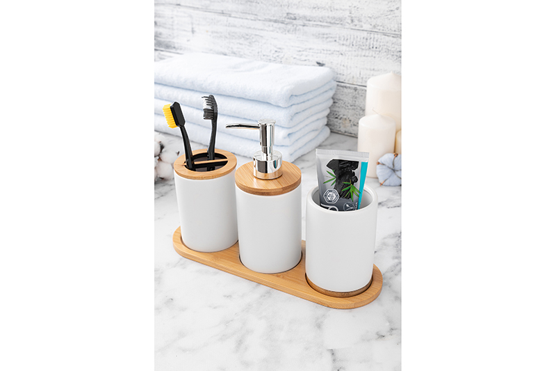 Набор д/ванной 3 пр. "Белый с хромом" на деревянной подставке
