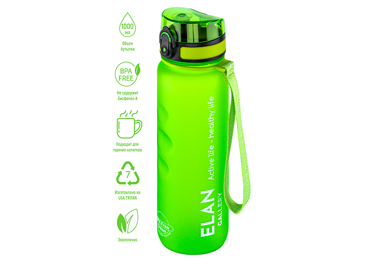Без акции 1435 руб! Бутылка для воды 1000 мл 7,8*7,8*28,5 см "Style Matte" с углублениями д/пальцев ярко-зеленая