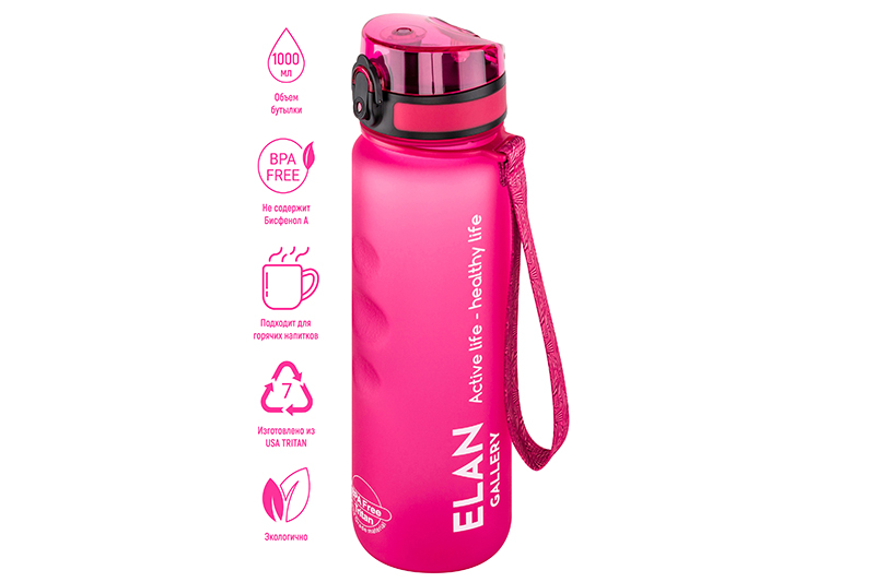 Без акции 1435 руб! Бутылка для воды 1000 мл 7,8*7,8*28,5 см "Style Matte" с углублениями д/пальцев фуксия