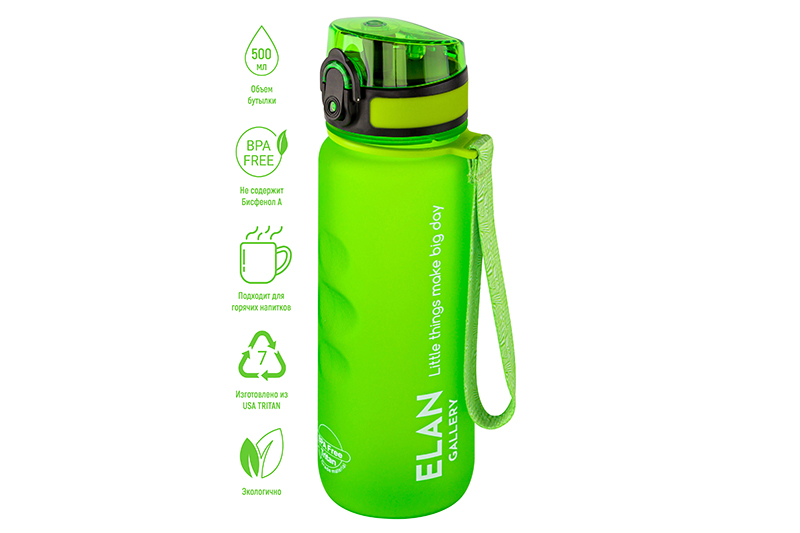Без акции 1108 руб! Бутылка для воды 500 мл 6,5*6,5*23 см "Style Matte" с углублениями д/пальцев, ярко-зеленая