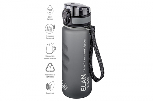 Без акции 1108 руб! Бутылка для воды 500 мл 6,5*6,5*23 см "Style Matte" с углублениями д/пальцев, серая