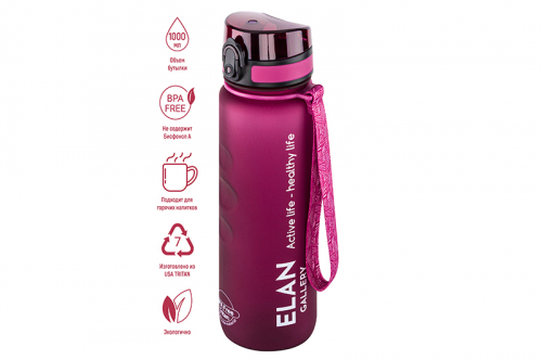 Без акции 1435 руб! Бутылка для воды 1000 мл 7,8*7,8*28,5 см "Style Matte" с углублениями д/пальцев бургундия