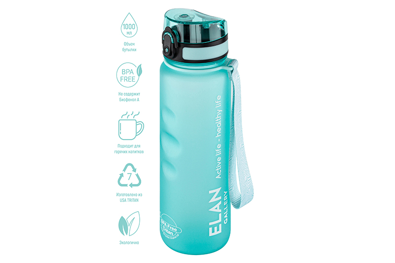 Без акции 1435 руб! Бутылка для воды 1000 мл 7,8*7,8*28,5 см "Style Matte" с углублениями д/пальцев аквамарин