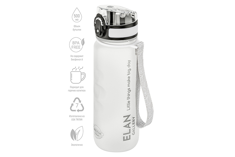 Без акции 1108 руб! Бутылка для воды 500 мл 6,5*6,5*23 см "Style Matte" с углублениями д/пальцев, белая