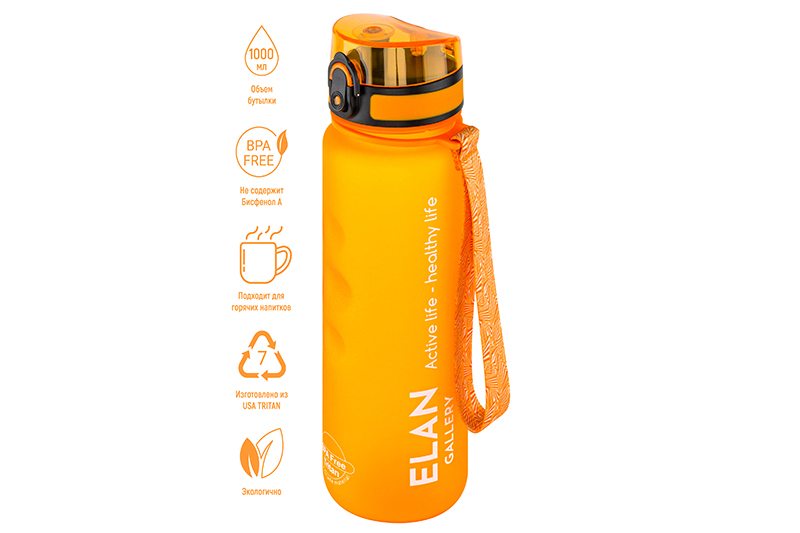 Без акции 1435 руб! Бутылка для воды 1000 мл 7,8*7,8*28,5 см "Style Matte" с углублениями д/пальцев оранжевая
