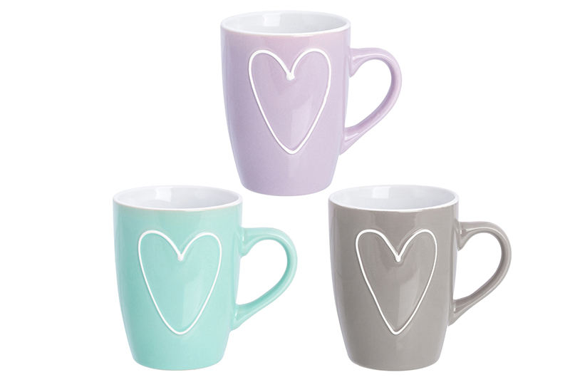Набор 3 кружек 350 мл 11,5*8*10,5 см "Сердце" мятная + капучино + сиреневая