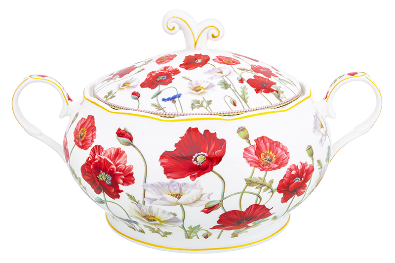 Пельменница - супница 30*22,5*18 см 2,6 л "Маки" + крышка NEW BONE CHINA