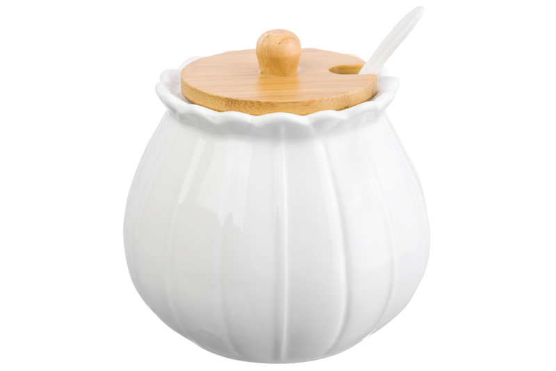 Банка д/специй 9,5*9,5*10 см 350 мл "Цветок" + дерев. крышка + ложка