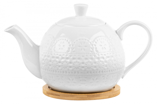 Чайник 1,1 л 23*13,5*14,5 см "Кружево" на деревянной подставке