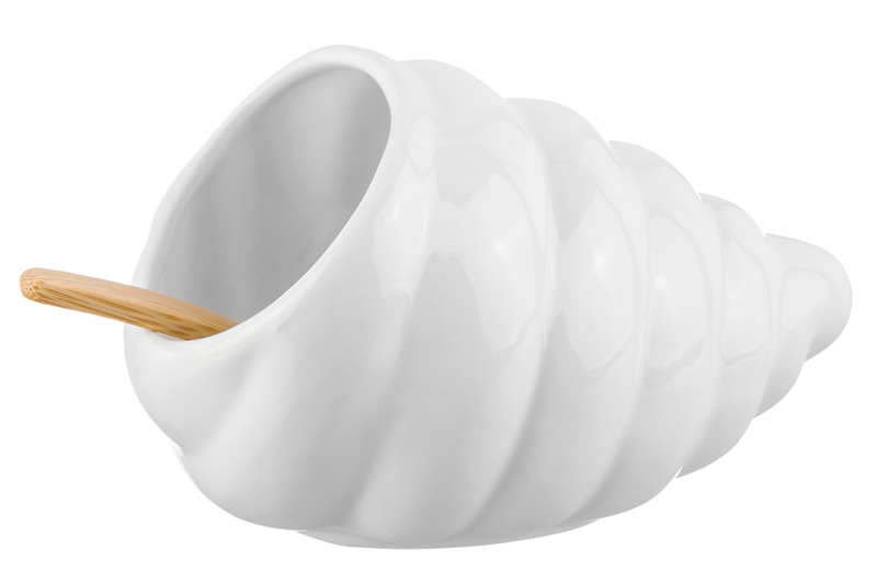 Банка д/соли 15*11*9,5 см 260 мл "Ракушка" + дерев. ложка