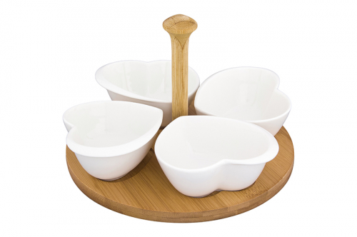 Менажница 21*21*13,5 см "Сердце" 4 секции на дерев. подставке с ручкой