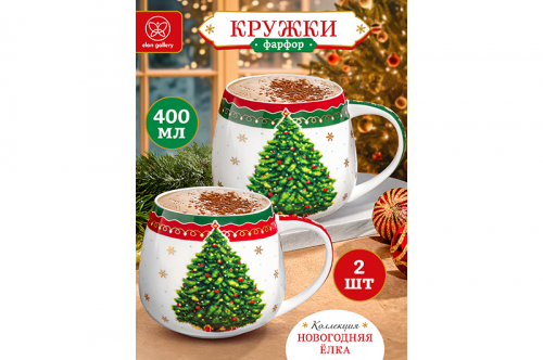 БЫЛО 968 руб! Набор 2 кружек 400 мл 13*10*8,5 см "Новогодняя елка" зеленый + красный узор, фарфор NEW BONE CHINA