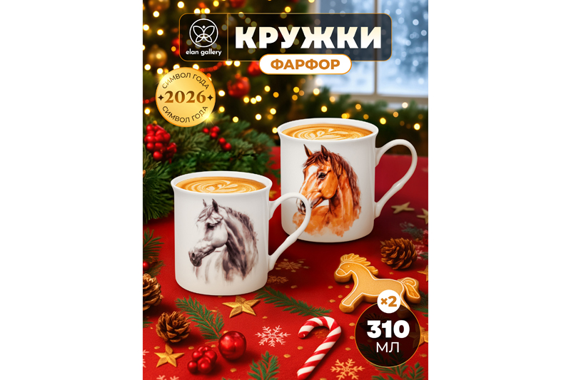 БЫЛО 601 руб! Набор 2 кружек 310 мл 11,5*8,5*9 см "Пара лошадей", фарфор