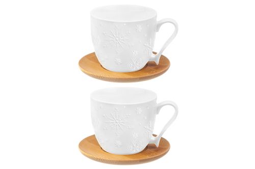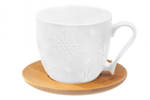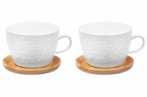 Чашка для капучино и кофе латте 500 мл 14*11,2*8 см "Снежинки" + дерев. подстав. (2 шт.)
