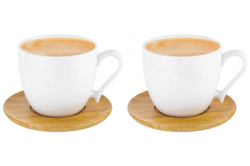 Чашка для капучино и кофе латте 200 мл 11*7,5*7 см "Белая метелица" + дерев. подставка (2 шт.)