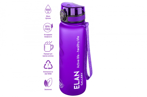 Бутылка для воды 1000 мл 7,8*7,8*28,5 см "Style Matte" с углублениями д/пальцев лаванда