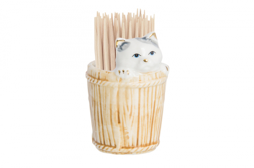 Вазочка п/зубоч. 5,8*4,5*7,5 см 50 мл "Котенок с вазой" белая, золото