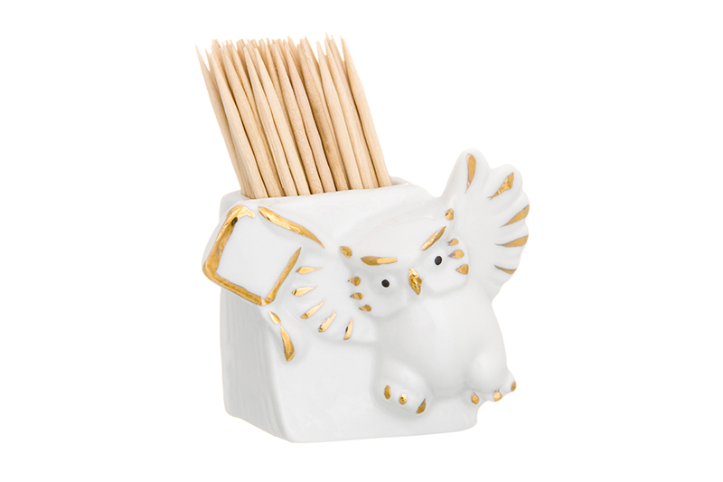 Вазочка п/зубоч. 5,5*3,3*5 см 20 мл "Сова" белая, золото