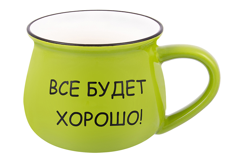 Кружка 400 мл 13*9,5*8 см "Все будет хорошо!" ярко - салатовая, бочонок, NEW BONE CHINA