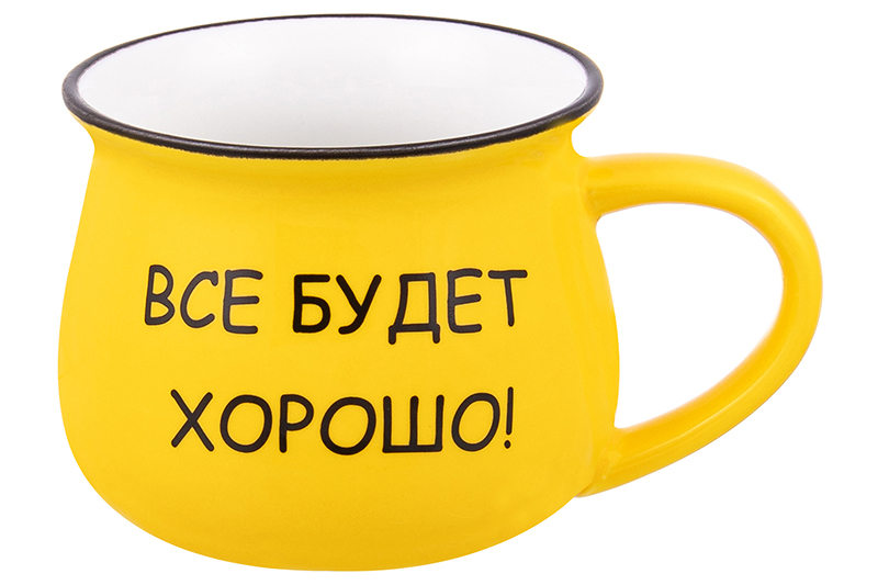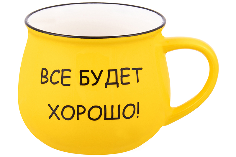 Кружка 400 мл 13*9,5*8 см "Все будет хорошо!" ярко - желтая, бочонок, NEW BONE CHINA