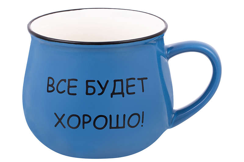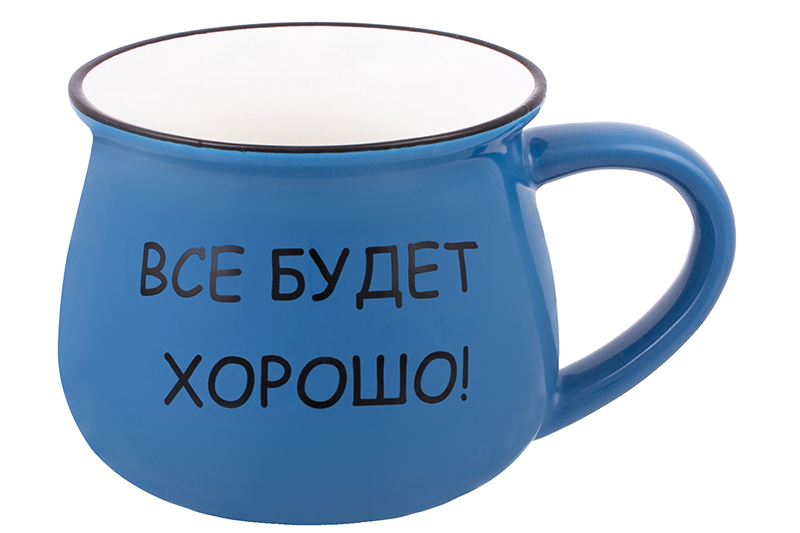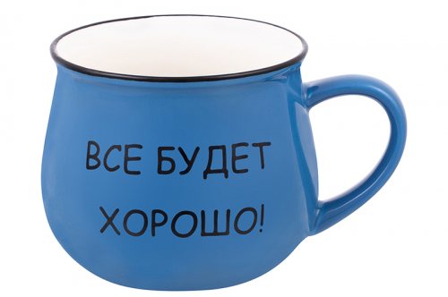 Кружка 400 мл 13*9,5*8 см "Все будет хорошо!" индиго, бочонок, NEW BONE CHINA