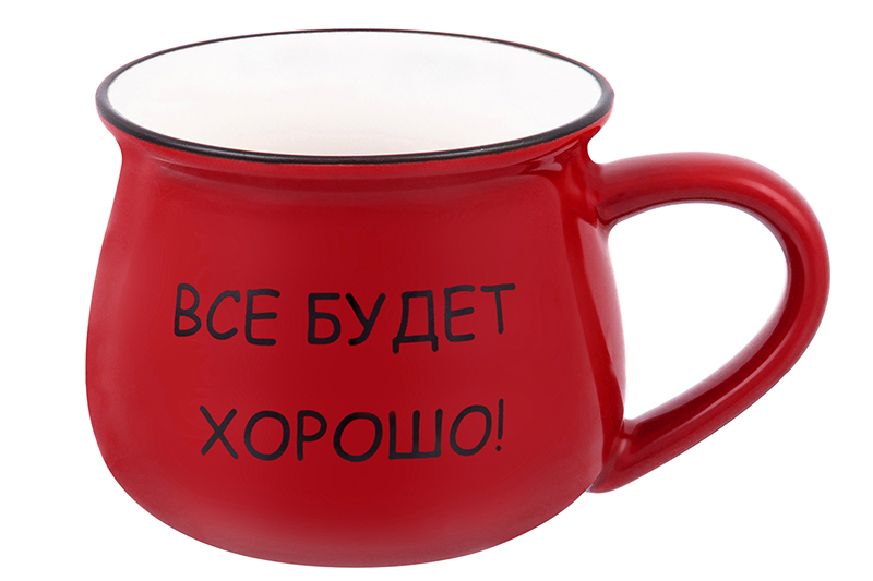 Кружка 400 мл 13*9,5*8 см "Все будет хорошо!" красная, бочонок, NEW BONE CHINA