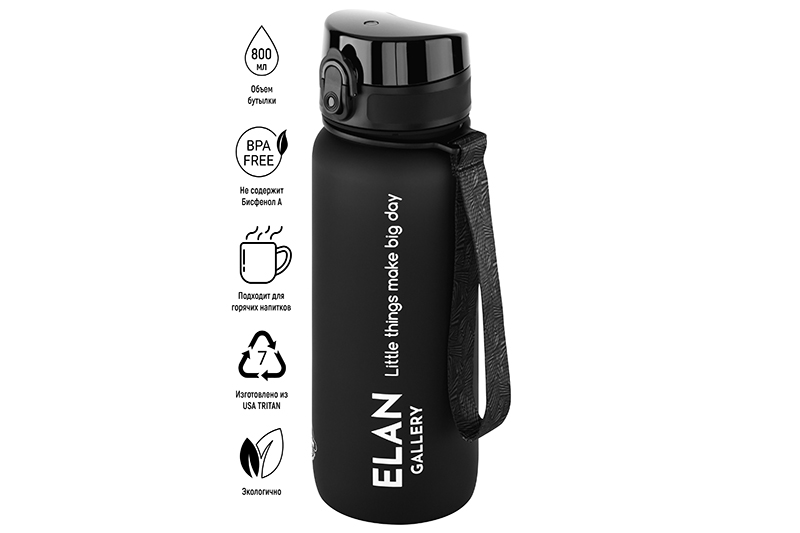 Бутылка для воды 800 мл 7,8*7,8*25,5 см "Style Matte" черная