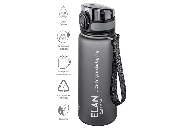 Бутылка для воды 500 мл 6,5*6,5*23 см "Style Matte" серая
