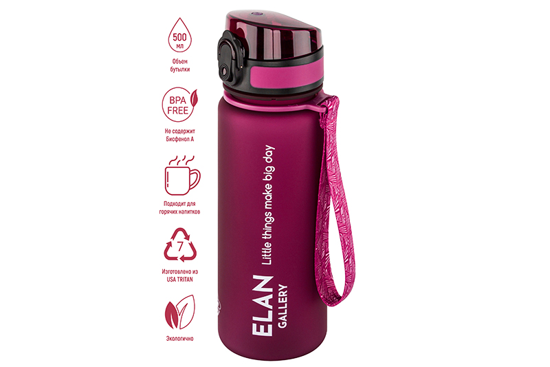 Бутылка для воды 500 мл 6,5*6,5*23 см "Style Matte" бургунди