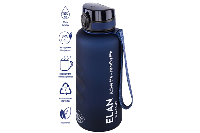 Бутылка для воды 1,5 л 10*10*28,5 см "Style Matte" с углублениями д/пальцев темно-синяя