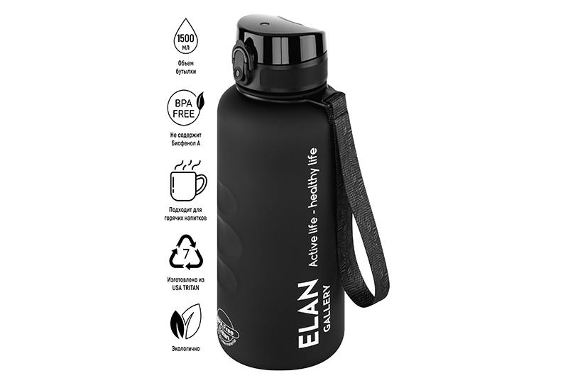 Бутылка для воды 1,5 л 10*10*28,5 см "Style Matte" с углублениями д/пальцев черная