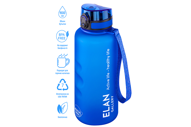 Бутылка для воды 1,5 л 10*10*28,5 см "Style Matte" с углублениями д/пальцев небесная