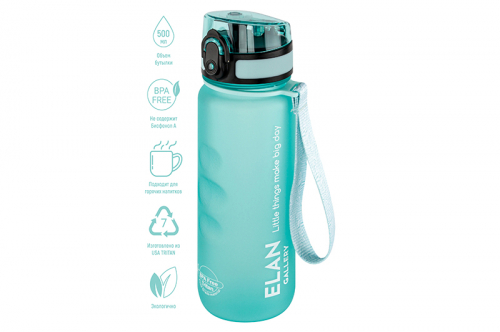 Бутылка для воды 500 мл 6,5*6,5*23 см "Style Matte" с углублениями д/пальцев, аквамарин
