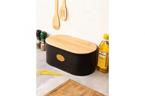 Хлебница 34*18*14 см "Черная" с бамбуковой крышкой