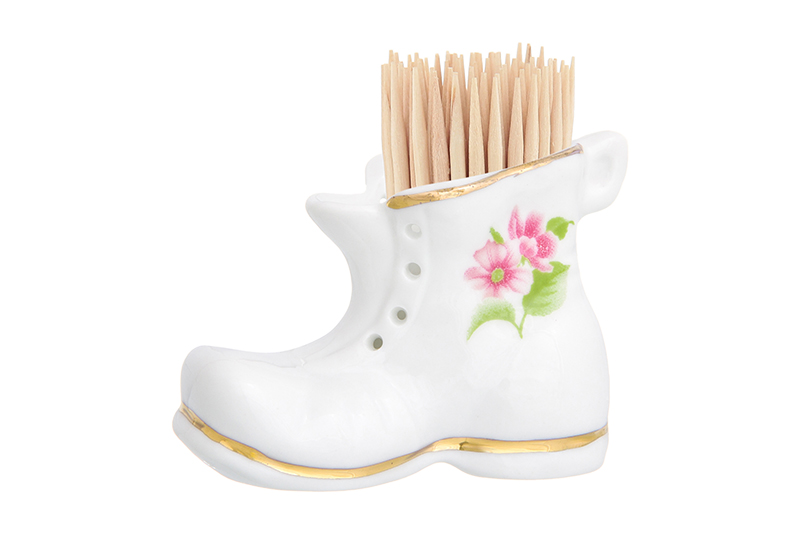 Вазочка п/зубоч. 7*3*5 см "Башмачок" белая, золото
