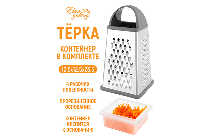 Тёрка 12,5*12,5*23,5 см "Серая" 4-сторонняя с пластиковым контейнером