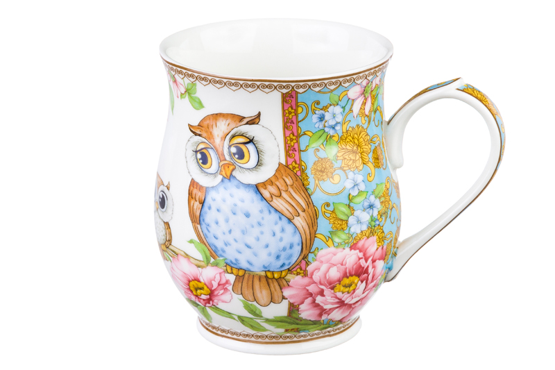 Кружка 350 мл 11,5*8,2*10 см "Совушки" бочонок, NEW BONE CHINA